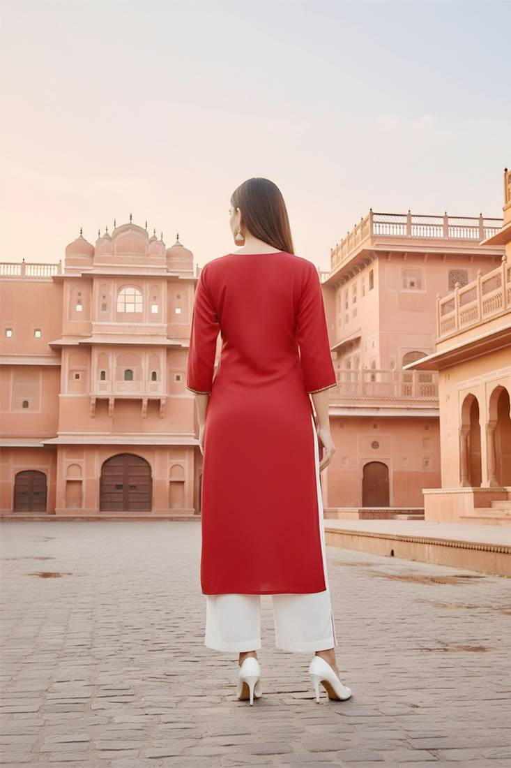 | Product Name | Red Embroidered Rayon Kurta Set | |