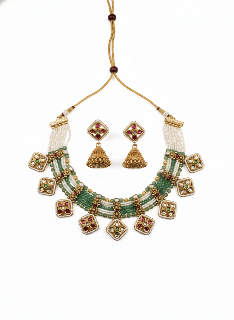 Product Name Royal Kundan Bandhai Beads Necklace Set
