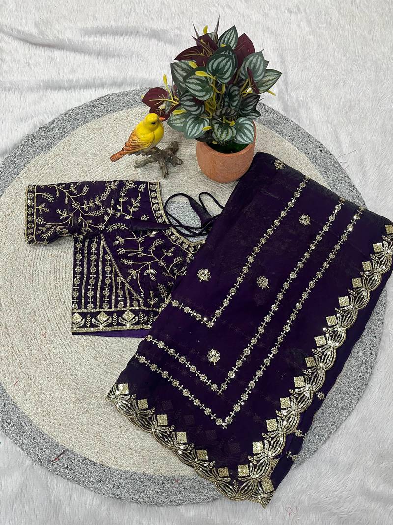 | Product Name | Purple Satin Silk Saree With Embroidered Blouse | |