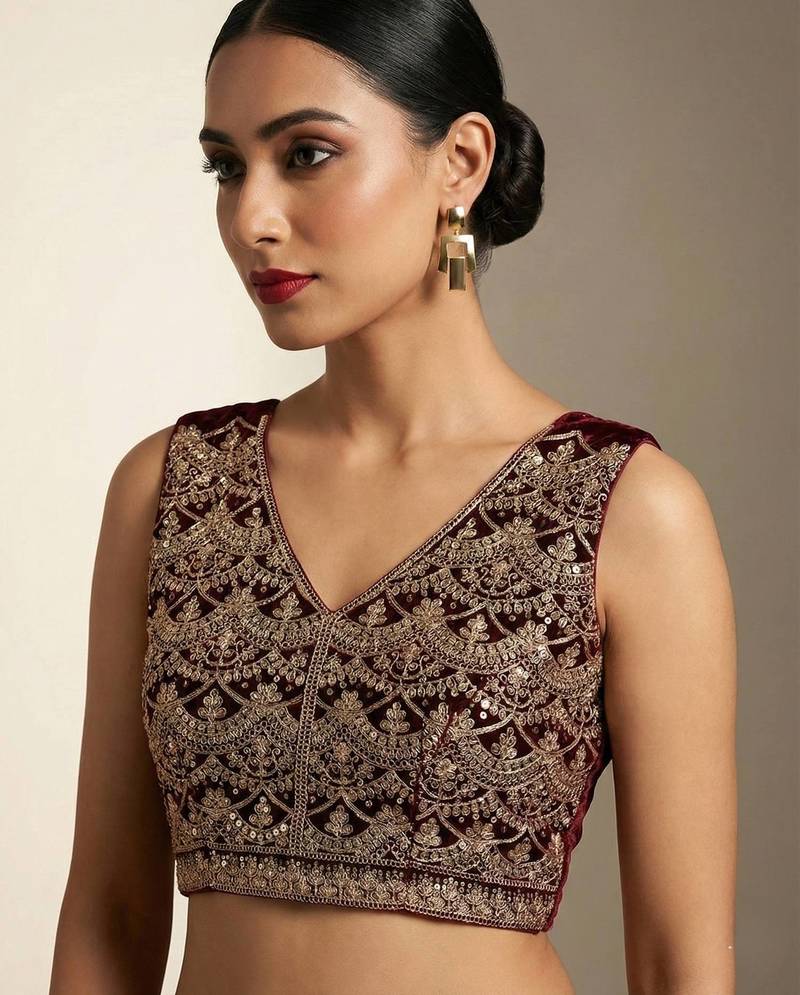 | Product Description | Make A Graceful Statement With This Elegant Wine Colored Velvet Saree, Crafted For Festive And Ceremonial Occasions. Made From Rich Viscose Velvet, The Saree Offers A Plush Texture With A Natural Sheen That Enhances Its Luxurious Appeal. The Solid Base Is Beautifully Highlighted With Intricate Zari Dori Embroidery And Fine Sequin Detailing Along The Border, Adding Depth And Sophistication Without Overpowering The Look. Paired With A Matching Velvet Blouse Featuring Coordinated Embroidery, This Saree Ensures A Refined And Cohesive Ensemble. Designed For Comfort And Style, It Drapes Effortlessly And Complements Evening Celebrations, Weddings, And Special Gatherings With Timeless Indian Elegance. |