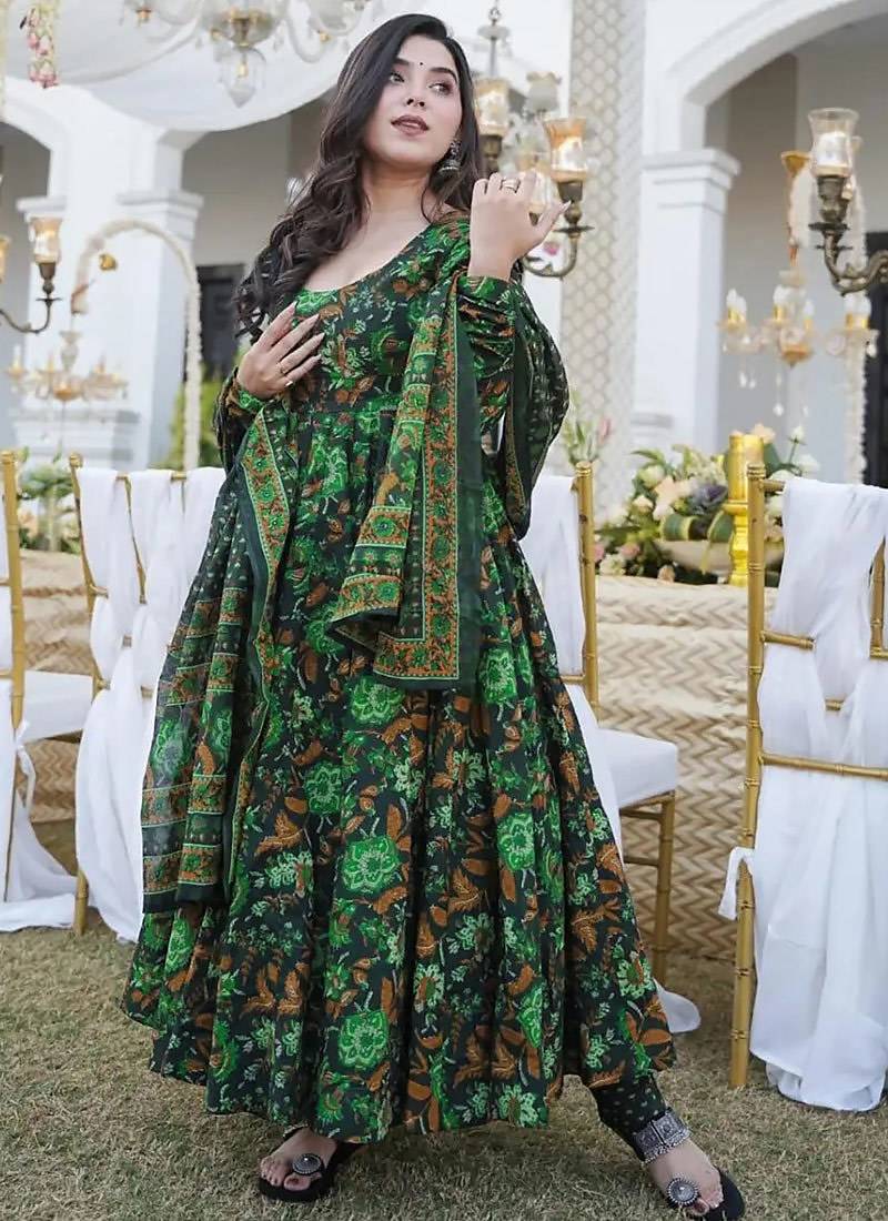 Product Name | Drak Green Heavy Digital Printed Maslin Anarkali Style | |