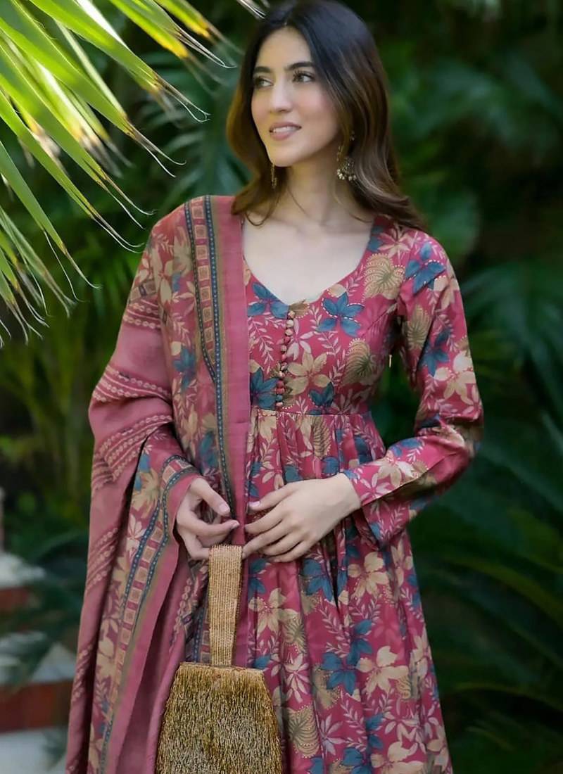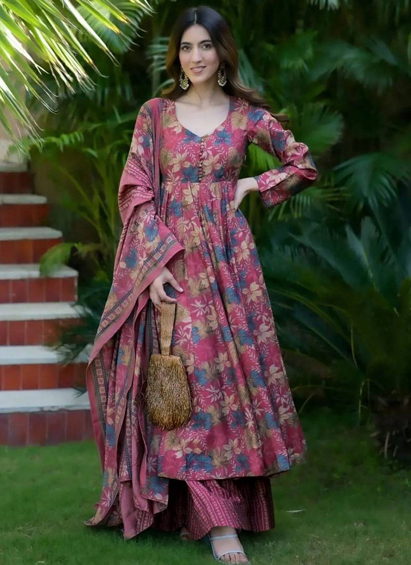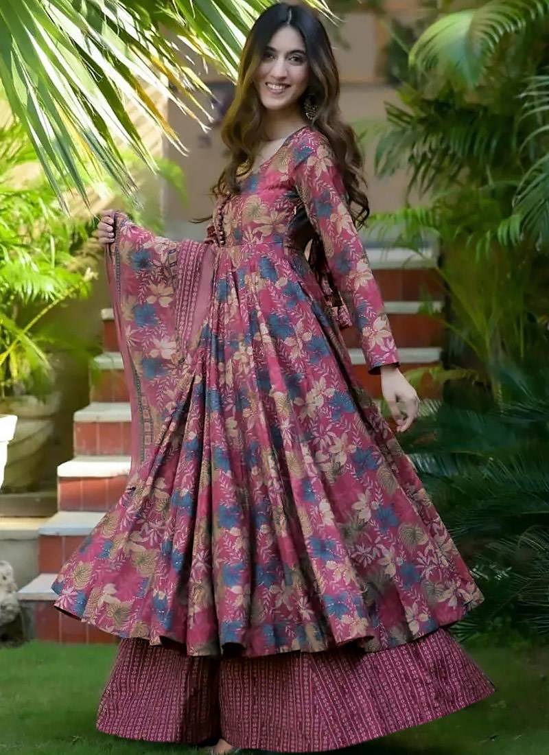 Product Name | Dusty Magenta Heavy Digital Printed Maslin Anarkali Palazzo Style | |
