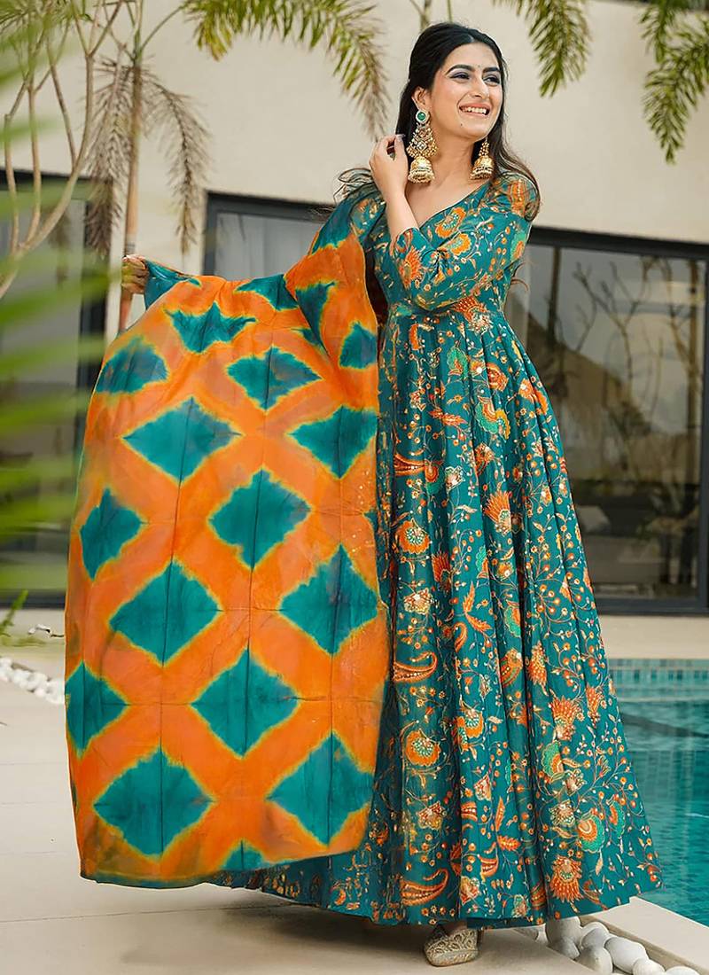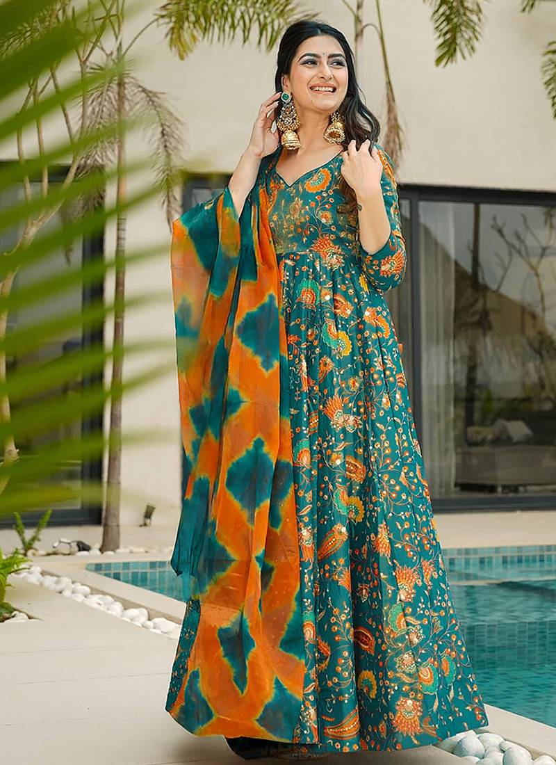 Product Name | Green Heavy Digital Printed Silk Gown Style | |