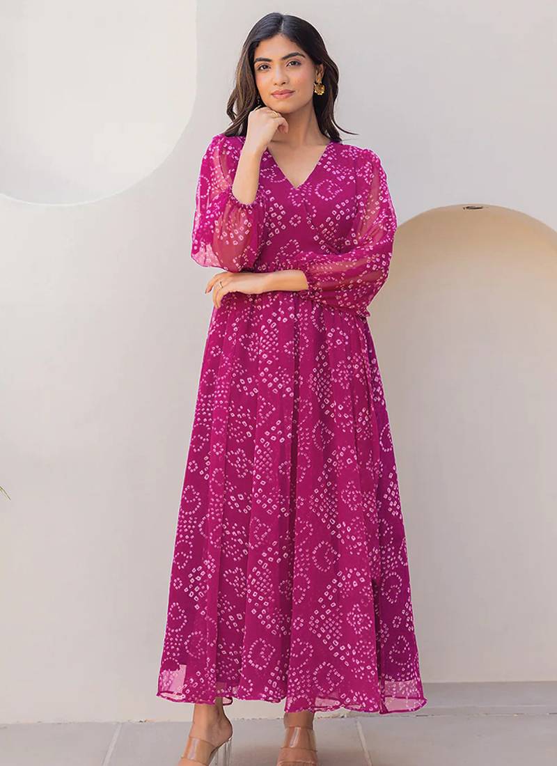 Product Name | Magenta Heavy Digital Printed Faux Georgette Gown Style | |