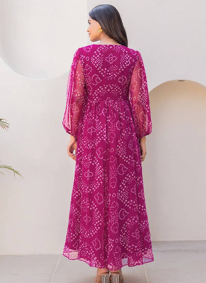 Magenta heavy digital printed faux georgette gown style