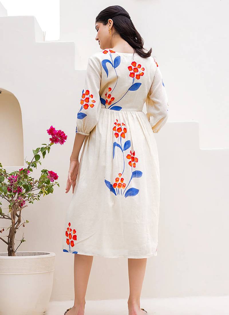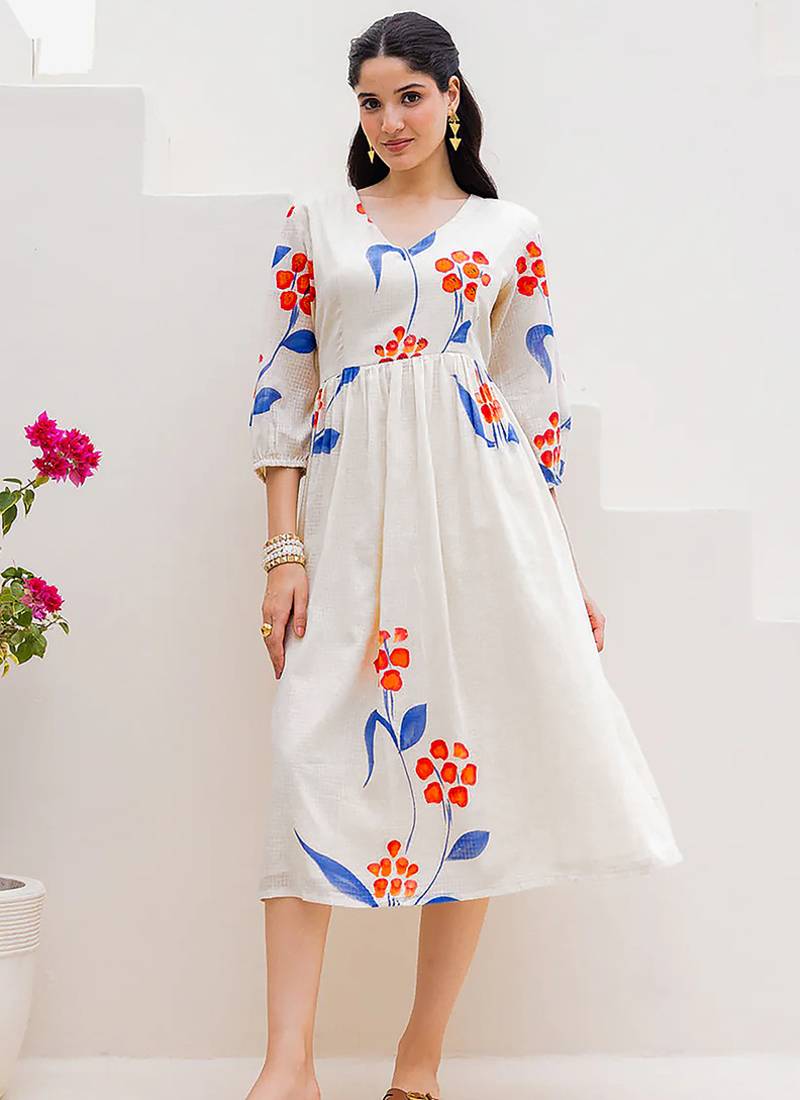 Product Name | Off White Digital Print Full Round Flair Kota Checks Kurti | |