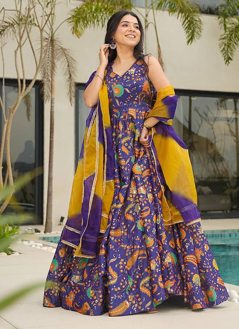 Product Name | Purple Heavy Digital Printed Silk Gown Style | |