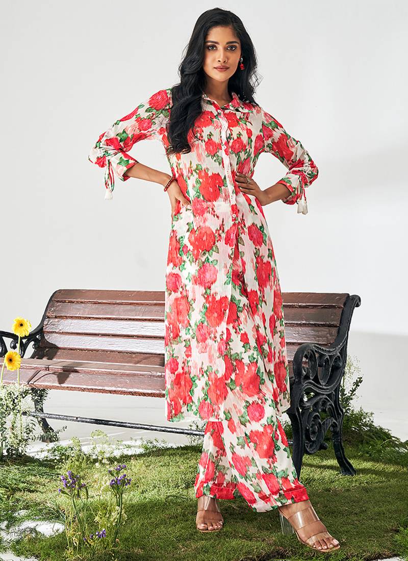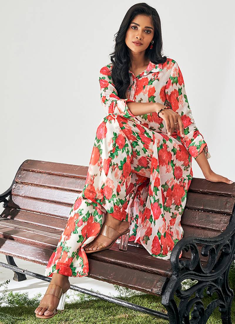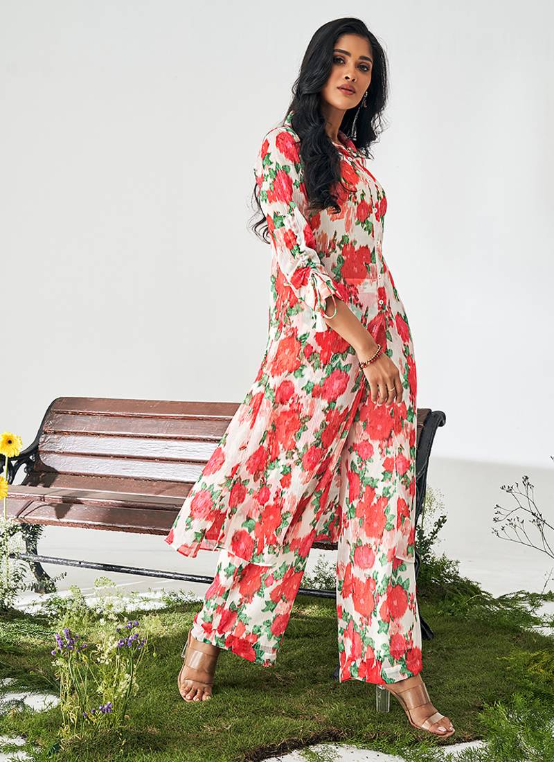 | Product Name | Rose Red Floral Print Poly Chiffon Co Ord Set | |