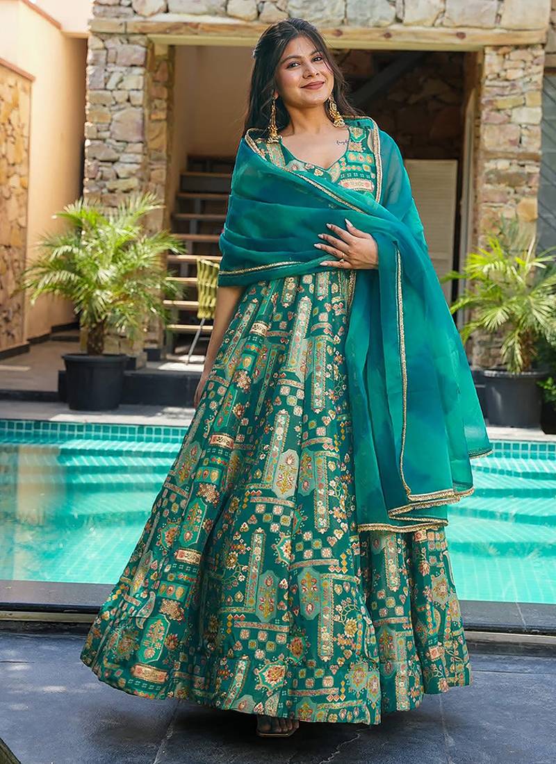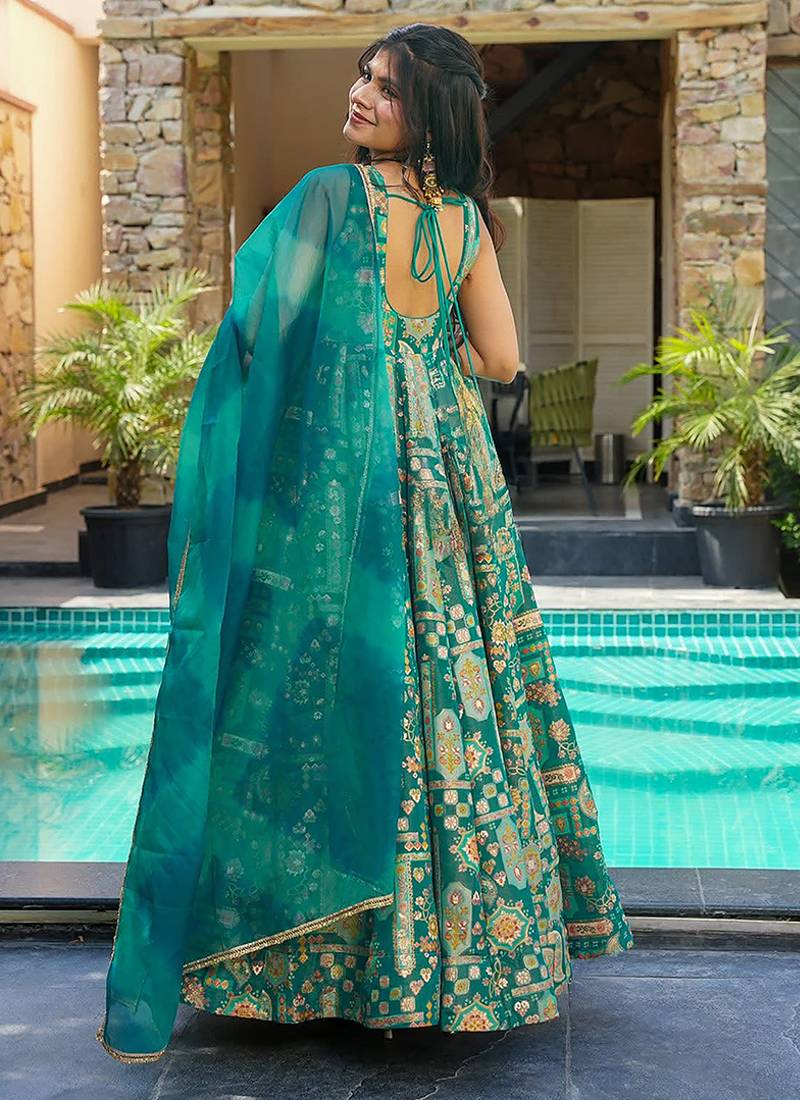 Product Name | Sea Green Heavy Digital Printed Silk Gown Style | |
