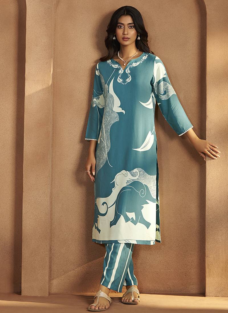 | Product Name | Turquoise Printred Viscose Rayon Co Ord Set | |