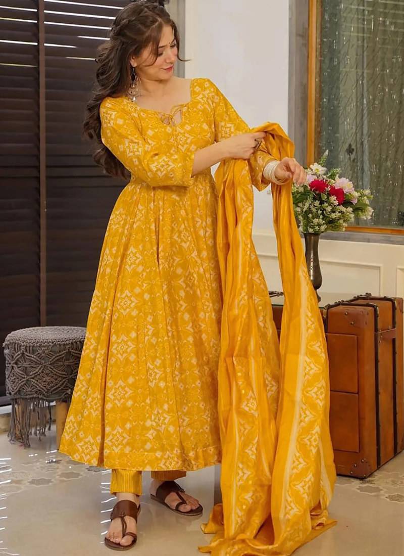 Product Name | Yellow Heavy Digital Printed Maslin Anarkali Style | |