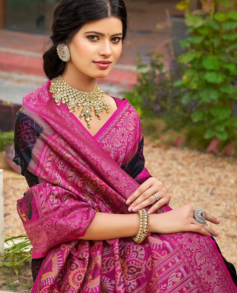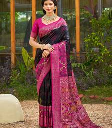 Black pochampalli silk blend saree for women | wedding & festive wear saree