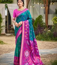 Teal blue pochampalli silk blend saree | traditional wedding & festive wear saree