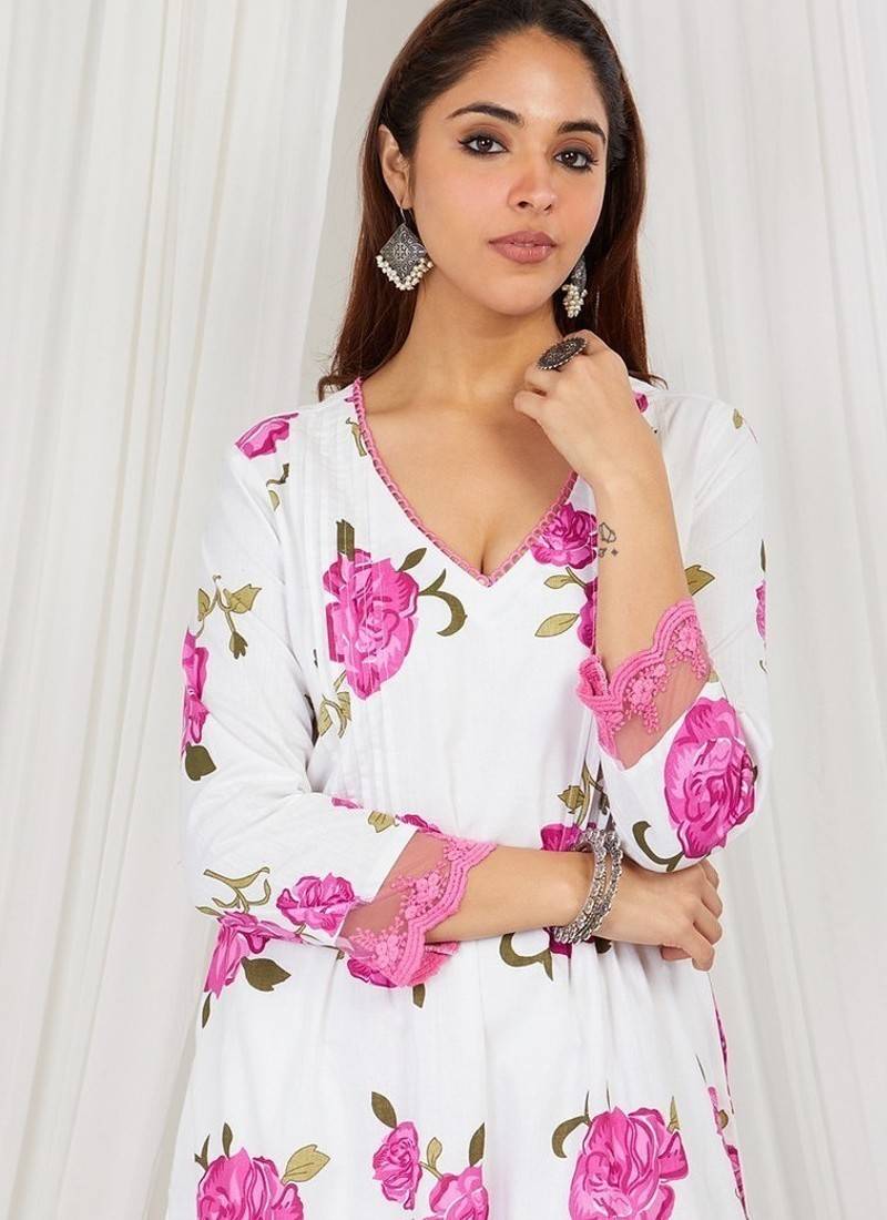 | Product Name | Pink Floral Printed Kurta Set With Lace Detailing And Kota Doria Dupatta | |