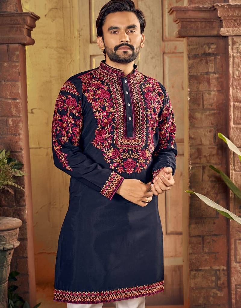 | Product Name | Blue Multi Thread Work Silk Straight Kurta | |