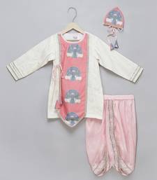 Pink printed cotton silk kurta pyjama
