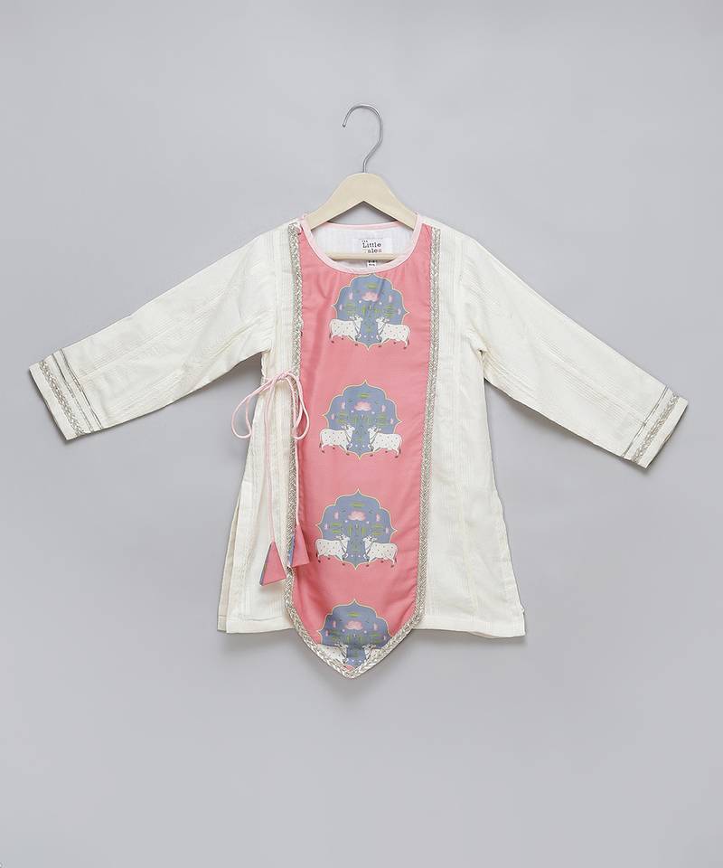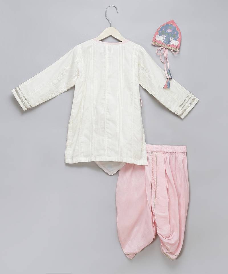 | Product Description | Cow Printed Flat With Cotton Jaquard Base Kurta And Light Ink Dhotis With Elastic And Lace Enhancement
