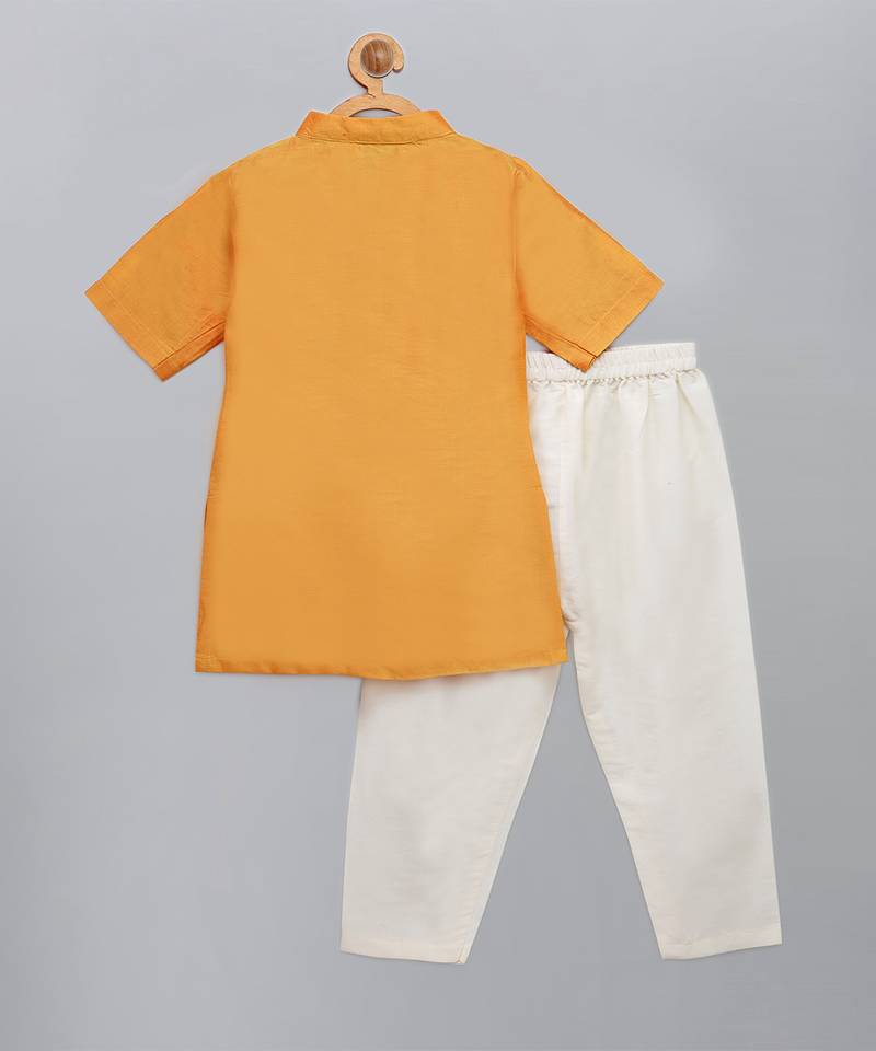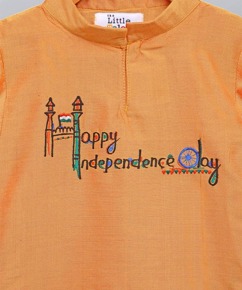 | Product Description | Orange Cotton Silk Independence Day Embroidered Kurta . Kurta With Loops On The Sleeves. Kurta With Half Sleeves.Pyjama With Elasticated Waist.