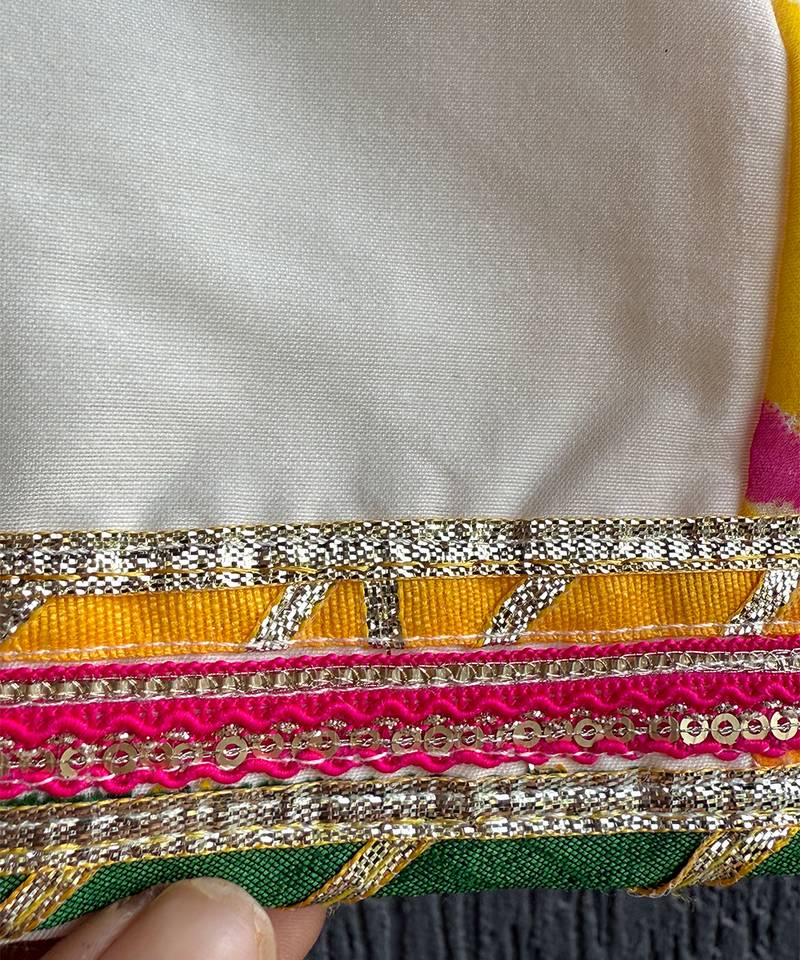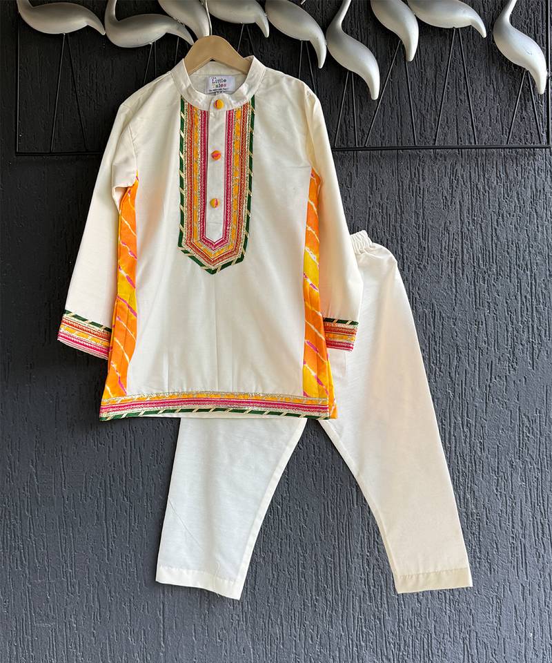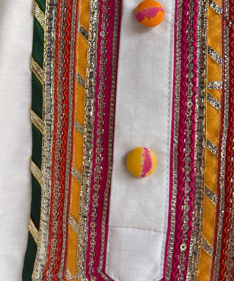 | Product Description | Off White Kurta Set With Kurta Packet With Around Lace Feshing Full Sleeves Border With Multi Clour Lace Kurta With Cotton Lining . Bottom With Elasicated Waist . Botton Off White Payjama .