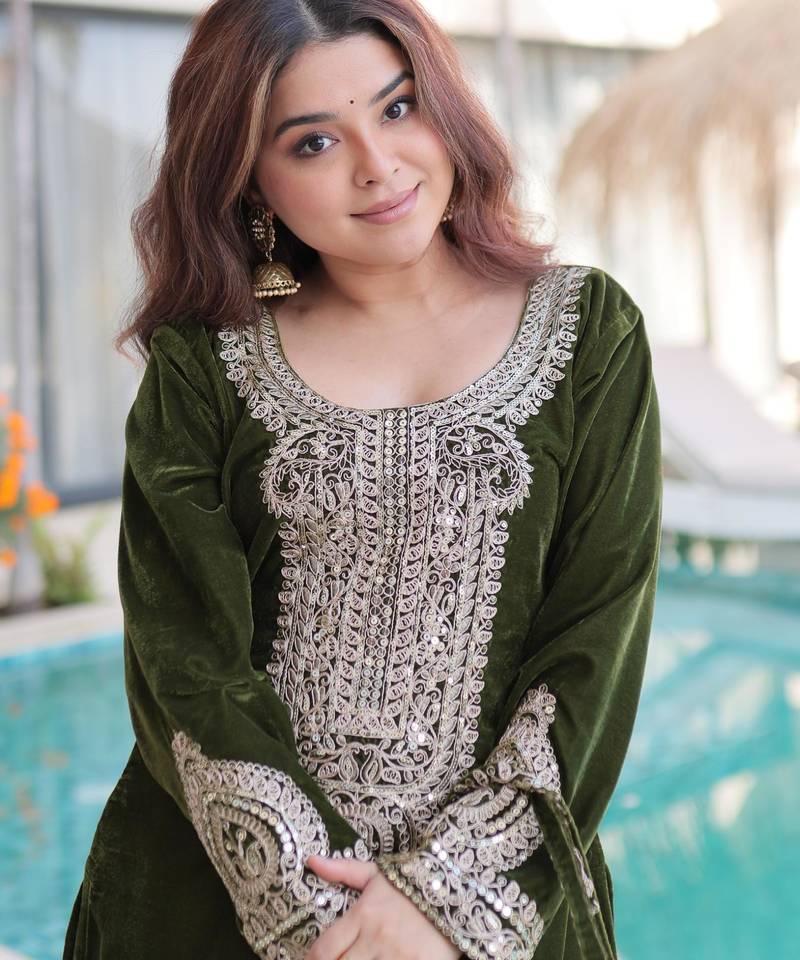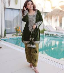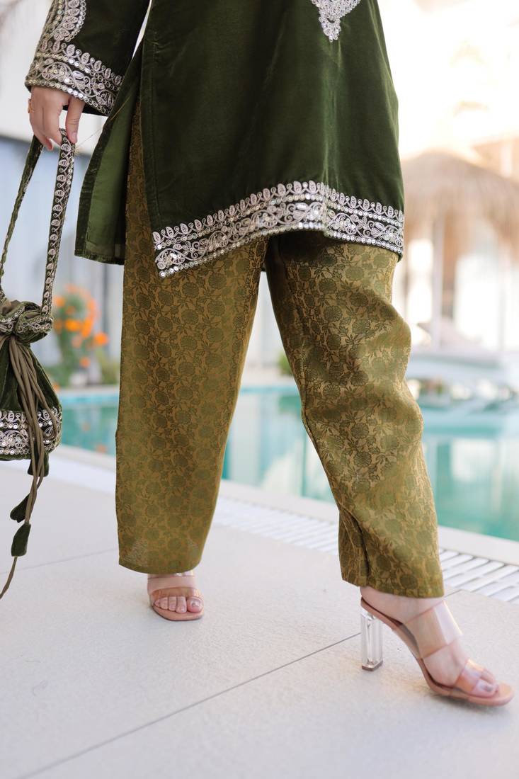 | Product Name | Green Velvet Zari Embroidered And Mirror Work Kurta With Pant | |