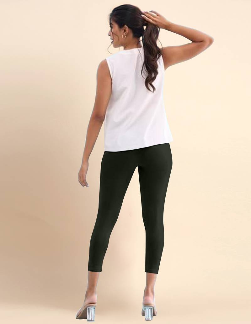 Mehndi microfiber elastane stretch soft cropped leggings with ultrasoft waistband