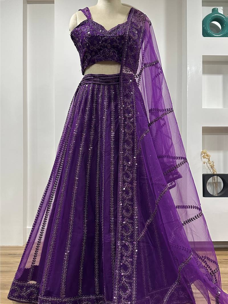 Wine net sequins work lehenga set choli with dupatta with dupatta