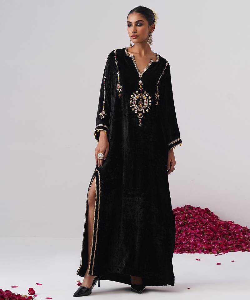 | Product Name | Black Embroidered Velvet Kaftan | |