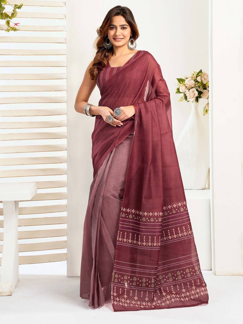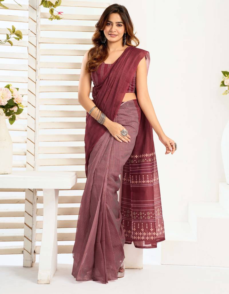 | Product Name | Maroon Printed Linen Stripes Design One Minute Saree With Unstitched Blouse Linen Saree | |