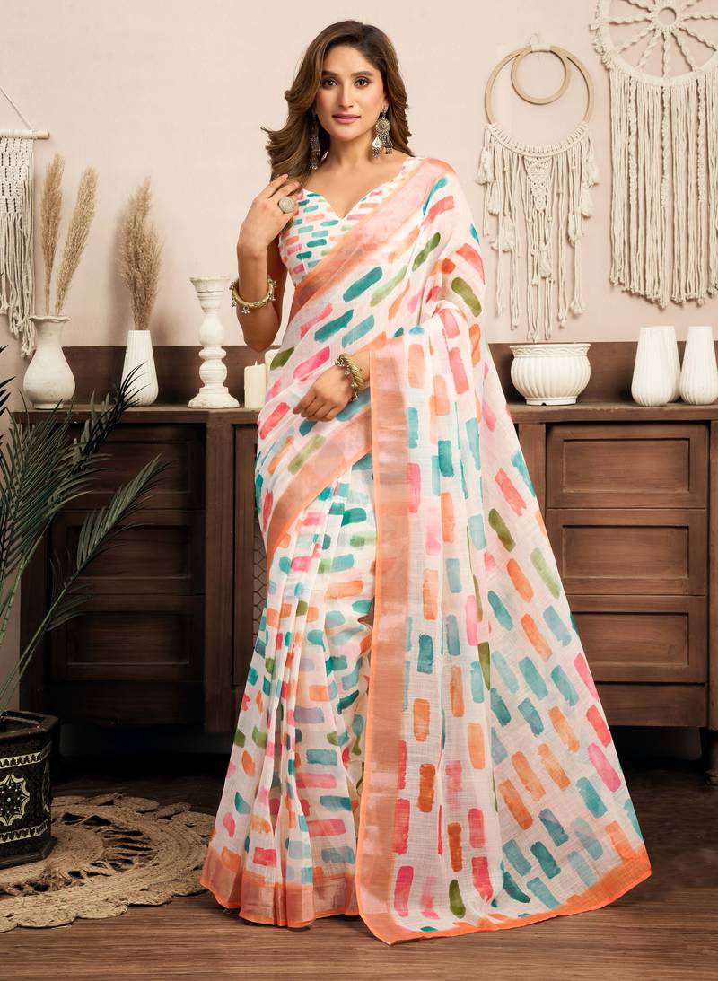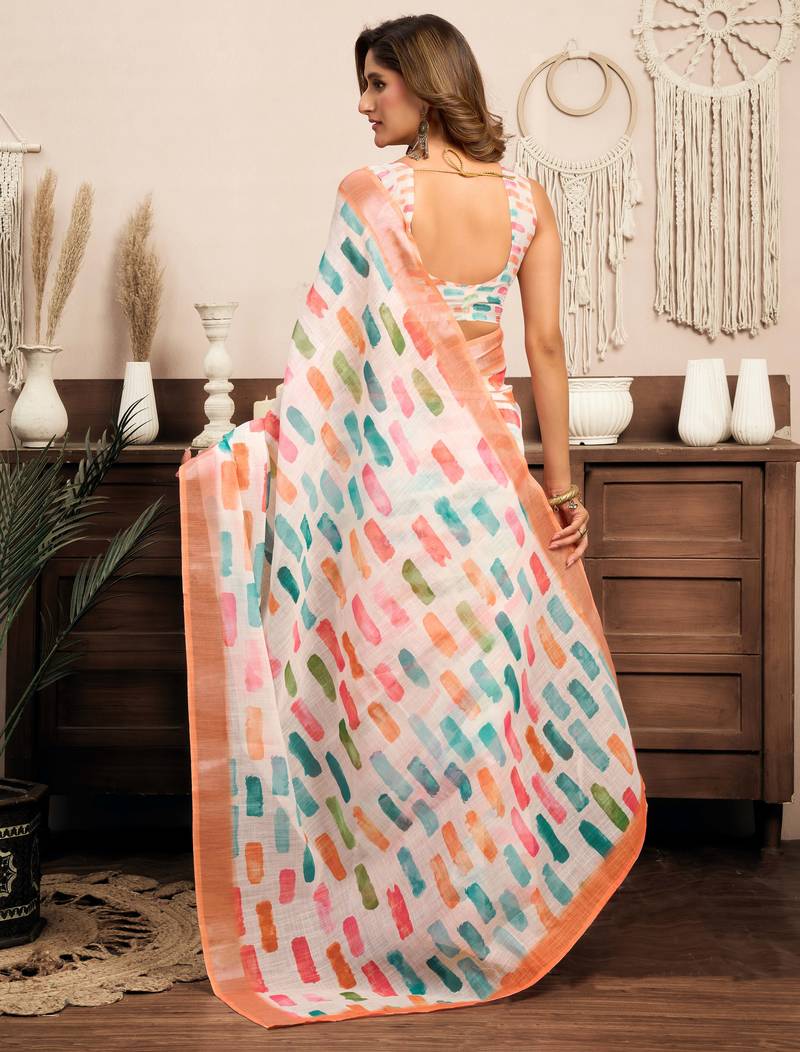 Product Name Multicolor Printed Linen Contemporary One Minute Saree With Unstitched Blouse