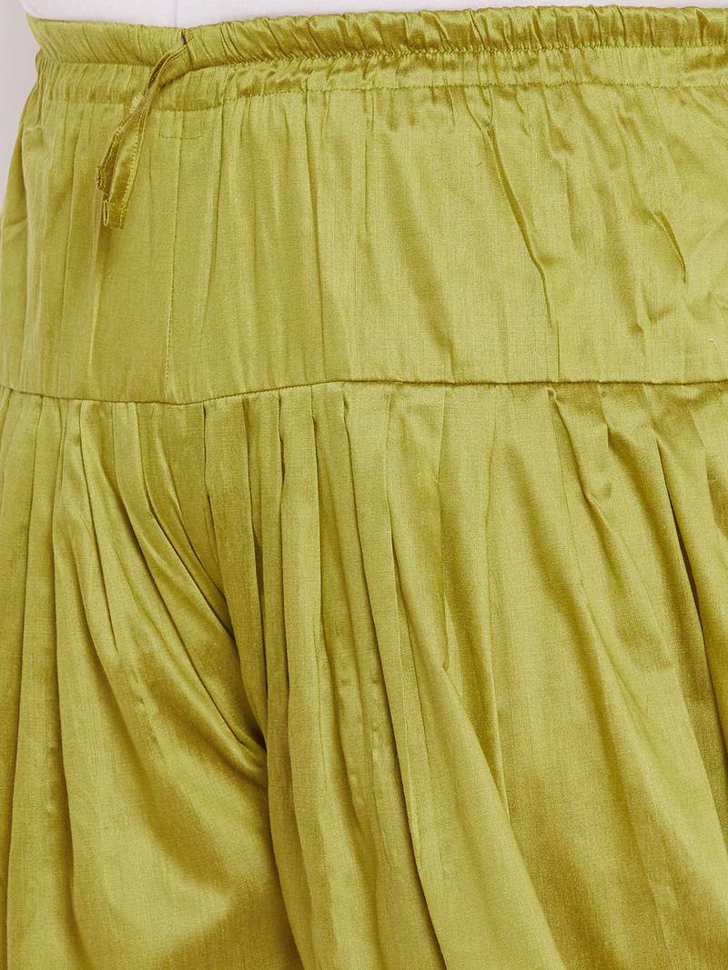 | Product Description | Present A Plus Size Green Solid Ready To Wear Mid Rise Dhoti Pants Has An Elasticated Waistband With A Drawstring Fastening And Cowl Detailing On The Side. |