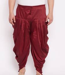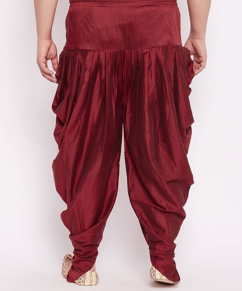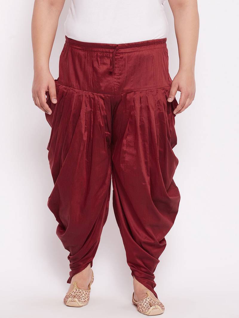 | Product Description | Present A Plus Size Maroon Solid Ready To Wear Mid Rise Dhoti Pants Has An Elasticated Waistband With A Drawstring Fastening And Cowl Detailing On The Side. |