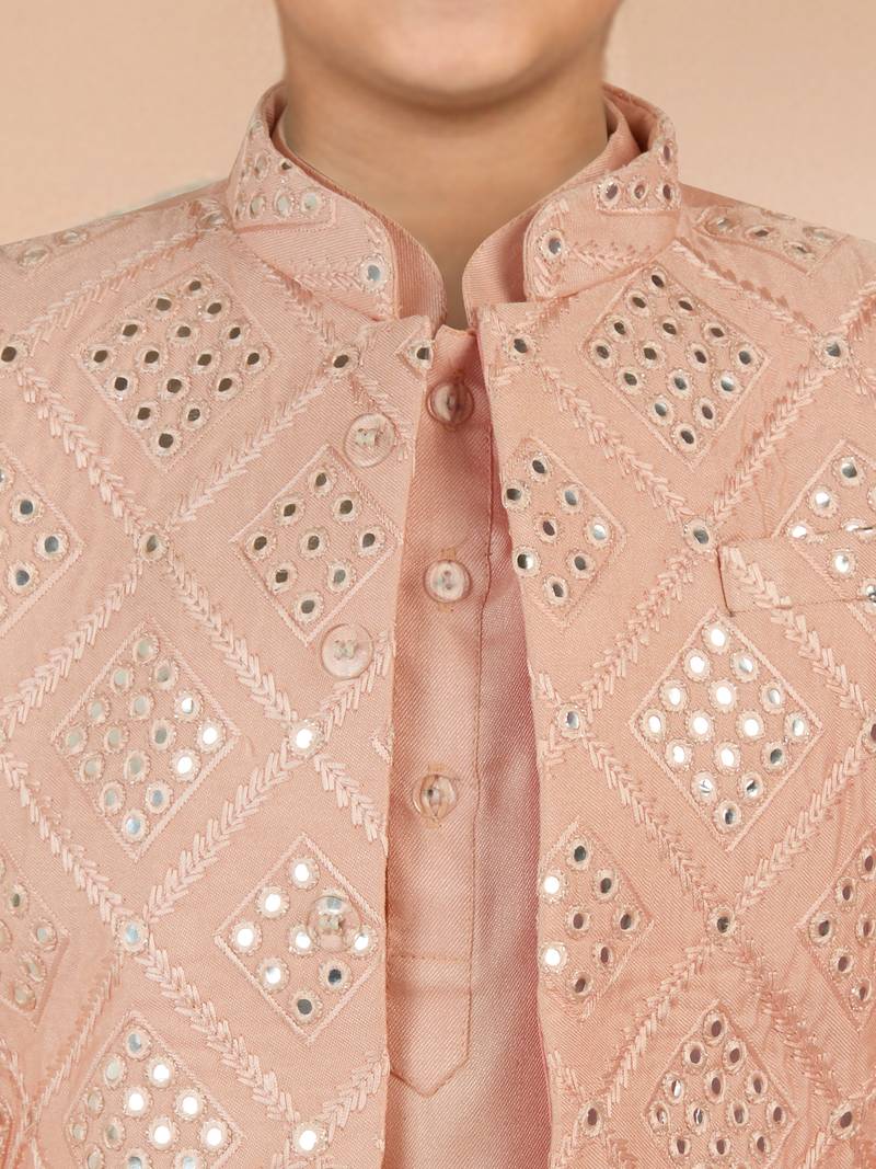 | Product Description | Elevate Your Ethnic Wardrobe With Vastramay's Pink Silk Blend Nehru Jacket Set. Features Stunning Mirror Work Embroidery In Geometric Patterns On Premium Silk Blend Fabric. Complete With Cream Viscose Pyjama For Contemporary Traditional Elegance. |