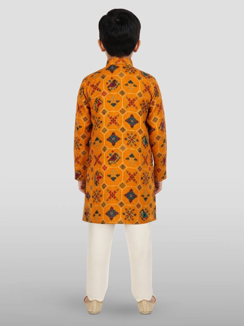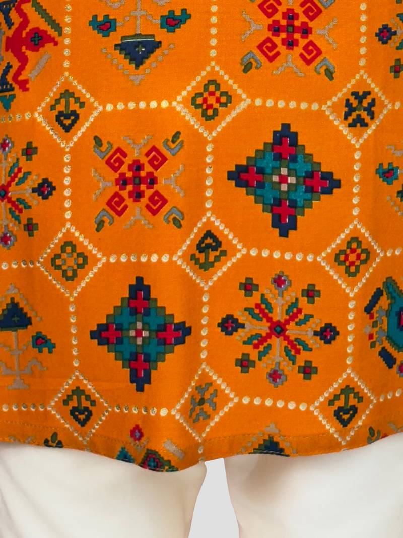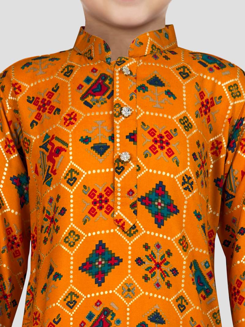 | Product Description | Shine Bright With Vastramay's Mustard Rayon Kurta Set. Features Eye Catching Sequin Geometric Patterns And Ethnic Motif Foil Print. Includes Contrasting Cream Silk Blend Pyjama For Vibrant Ethnic Styling. |