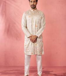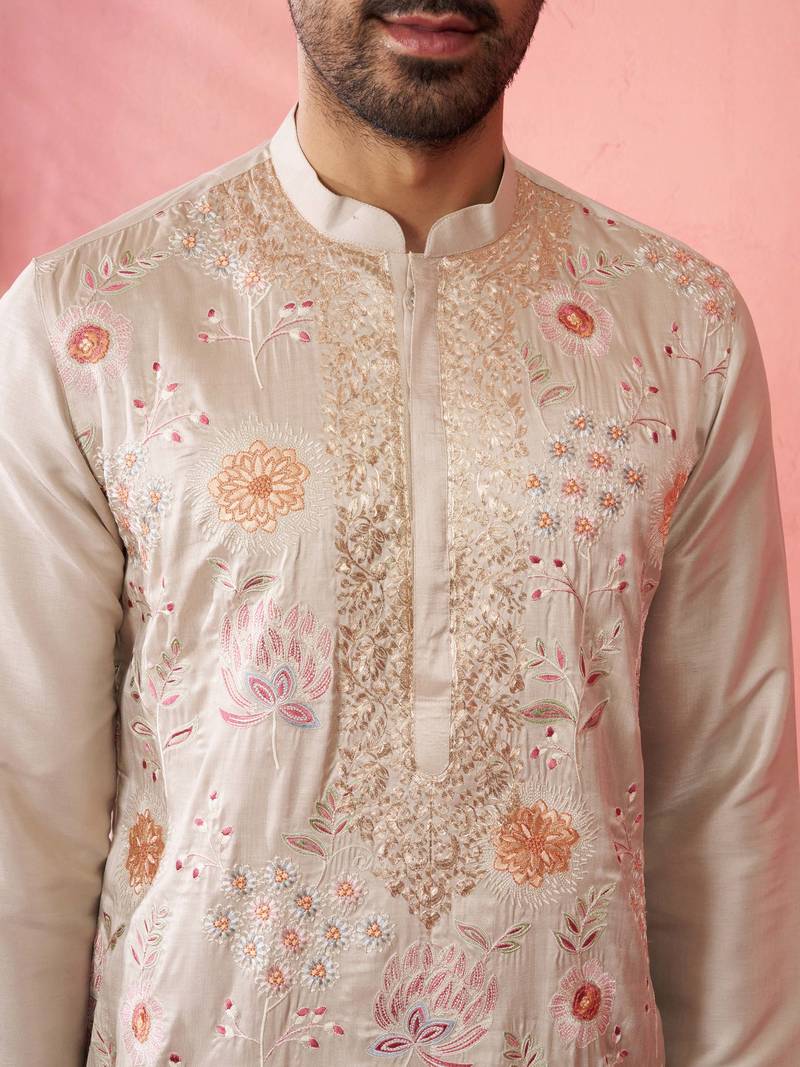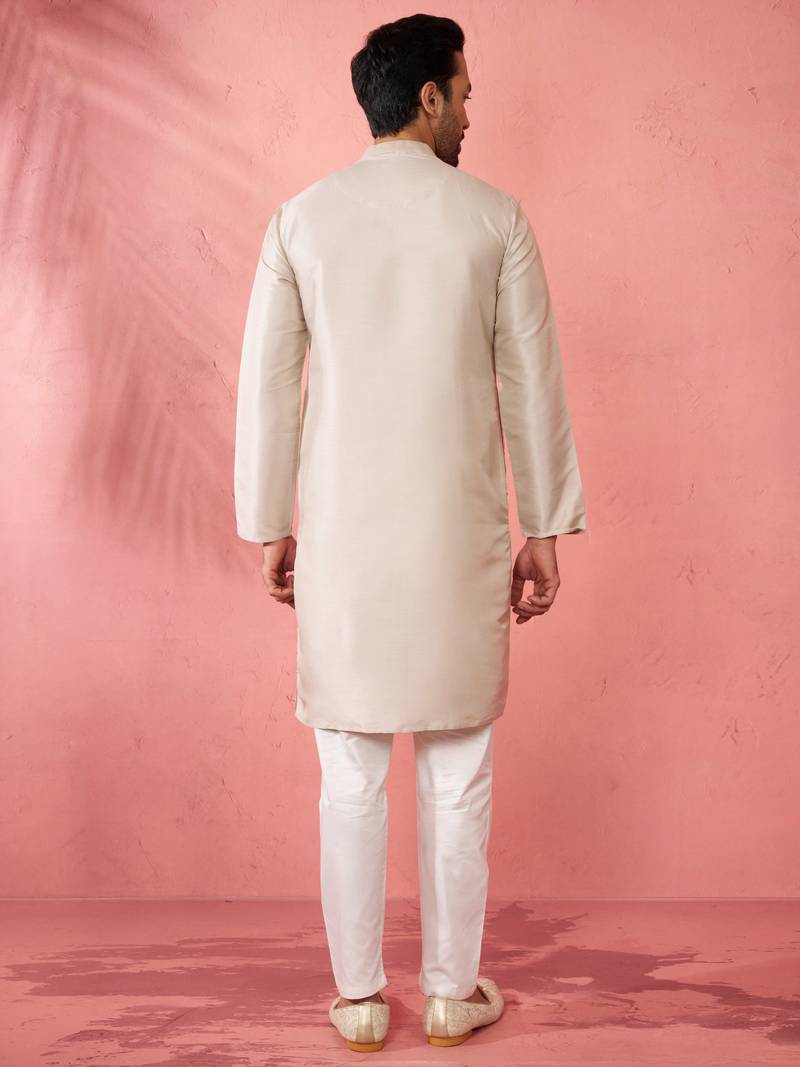 Product Name | Men's Grey Silk Blend Kurta With Cream Pyjama Traditional Festive Set | |