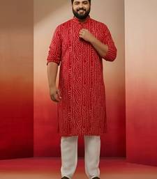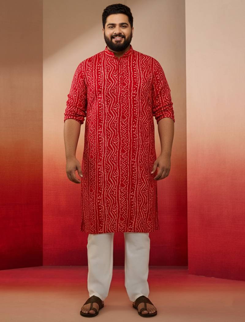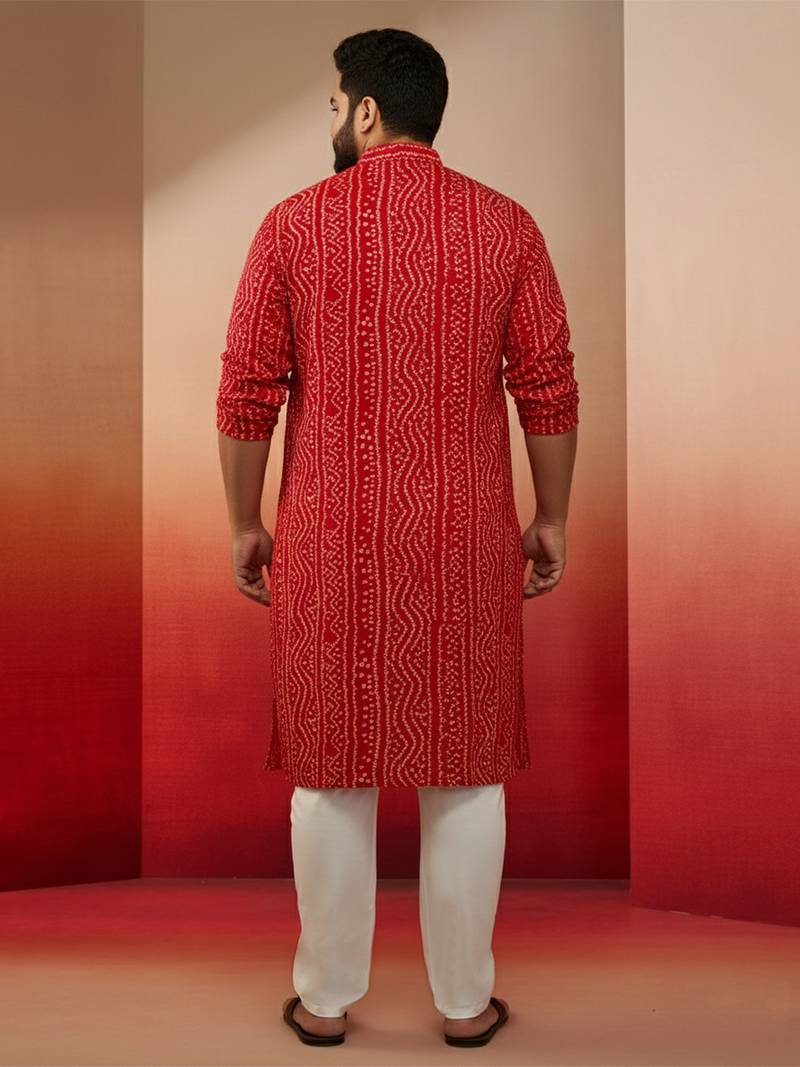 Product Name | Men's Red Bandhani Print Kurta With Cream Pyjama Festive Ethnic Set | |