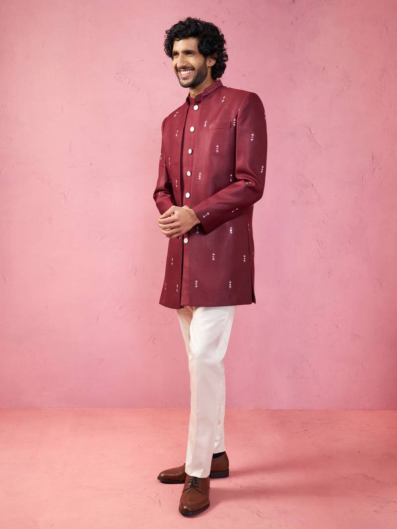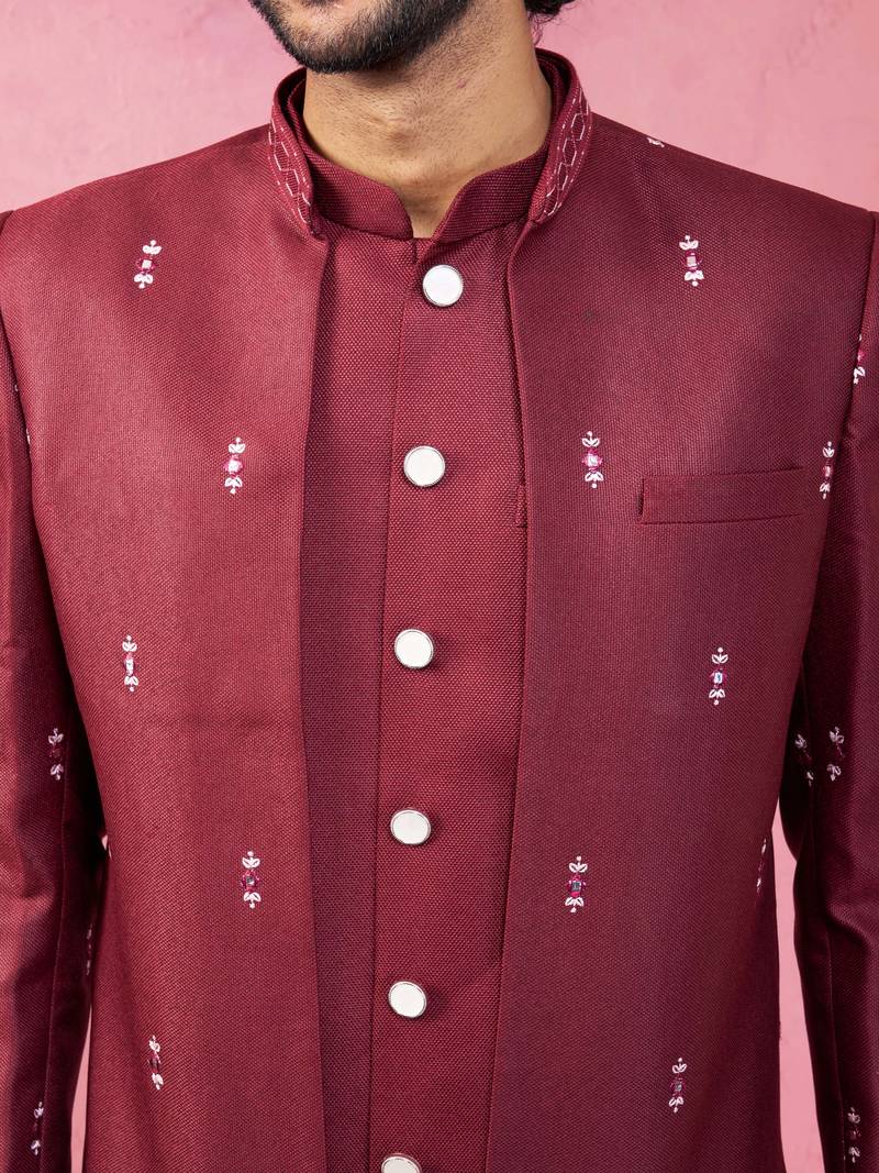 Mens wedding indo western embroidered coat pyjama set jute fabric ceremonial ethnic wear