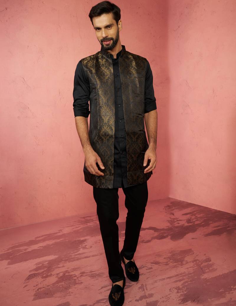 | Product Name | Mens Wedding Kurta Jacket Pant Set Thigh Length Kurta With Long Jacket Ethnic Festive Wear | |