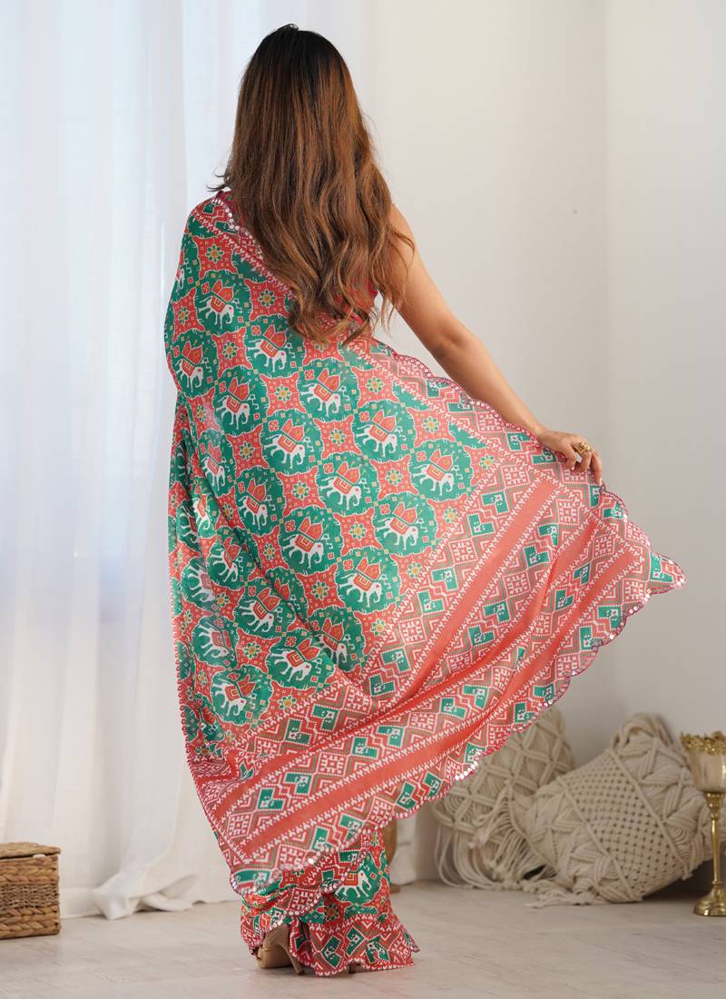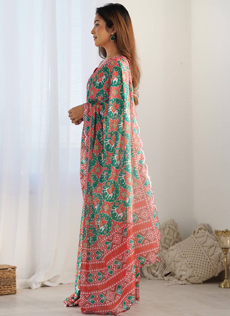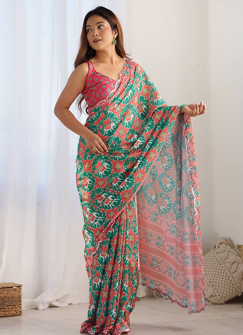 | Product Name | Multi Color Chinon Silk Blend Print Work With Mirror Work Border Designer Saree | |