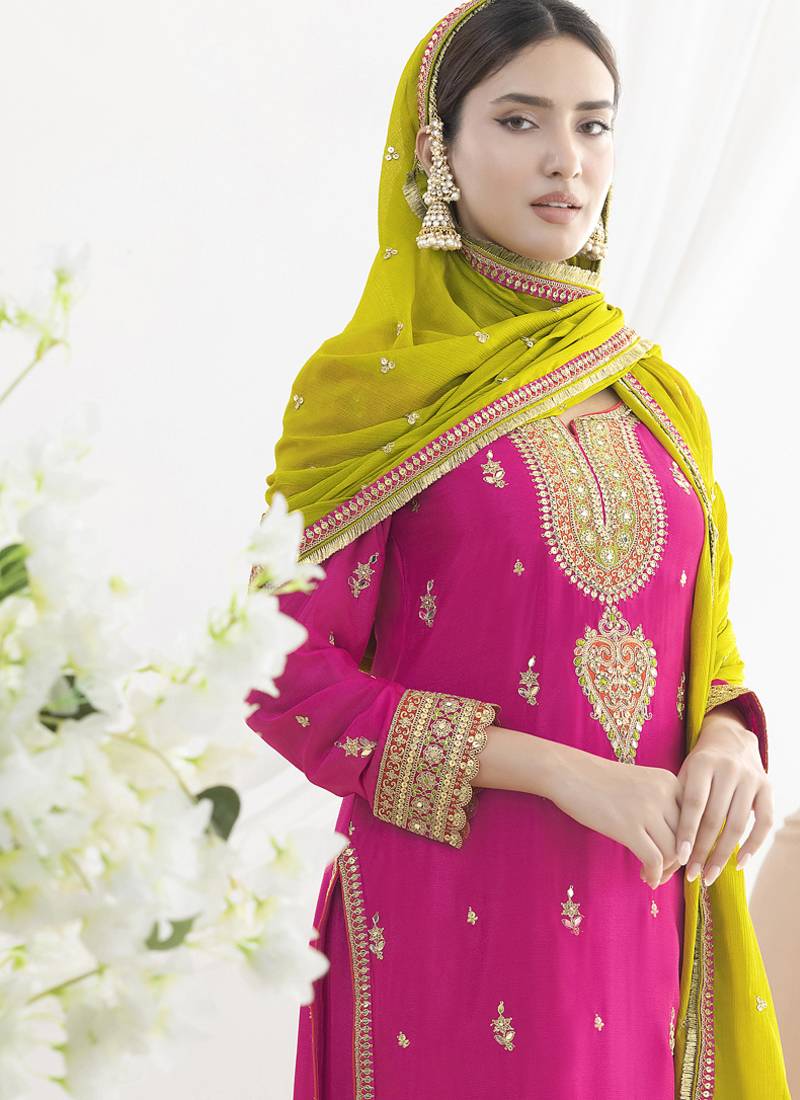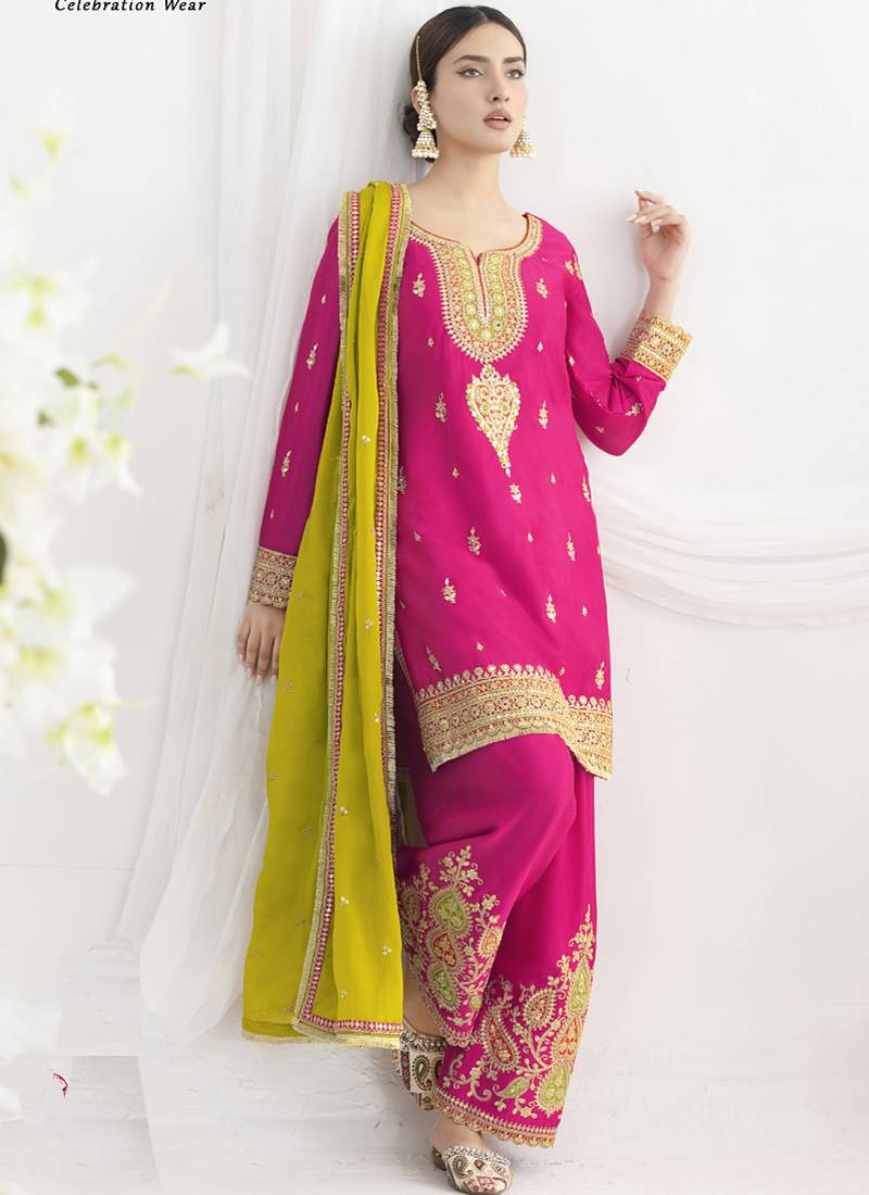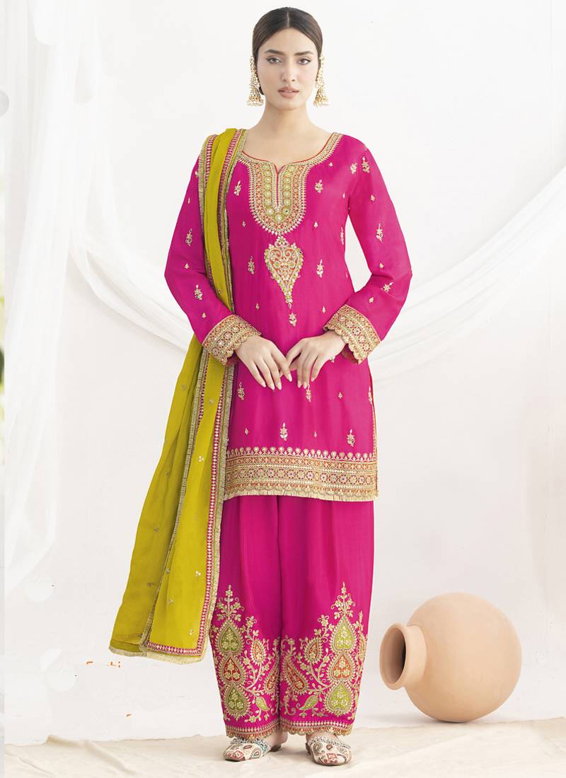 | Product Name | Pink Chinon Silk Embroidered Palazzo Salwar Suit | |