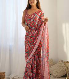 | Product Name | Red Chinon Silk Blend Print Work With Mirror Work Border Designer Saree | |