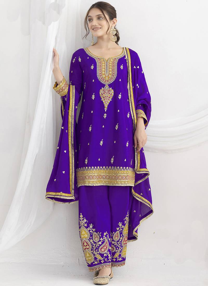 | Product Name | Violet Chinon Silk Embroidered Palazzo Salwar Suit | |