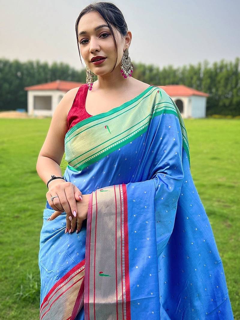 | Product Name | Blue Plain Silk Blend Paithani Saree Saree With Blouse | |