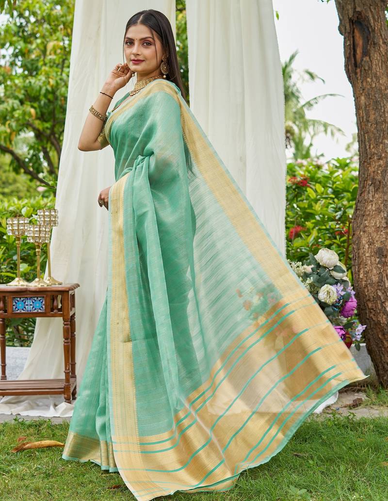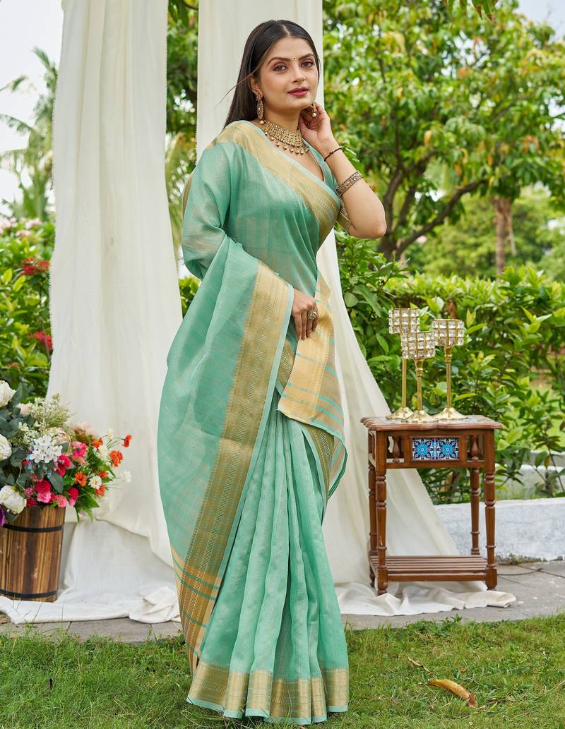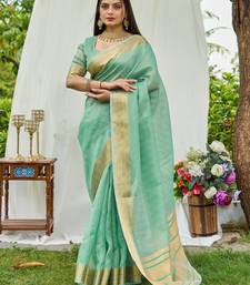 Blue plain silk silk-sarees saree with blouse