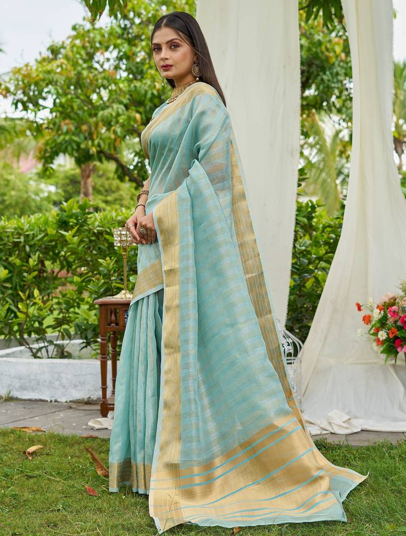 Blue plain silk silk-sarees saree with blouse