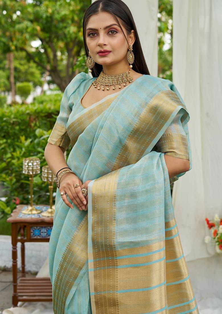 | • | Saree | : | Color- Blue / Fabric- Silk Blend |