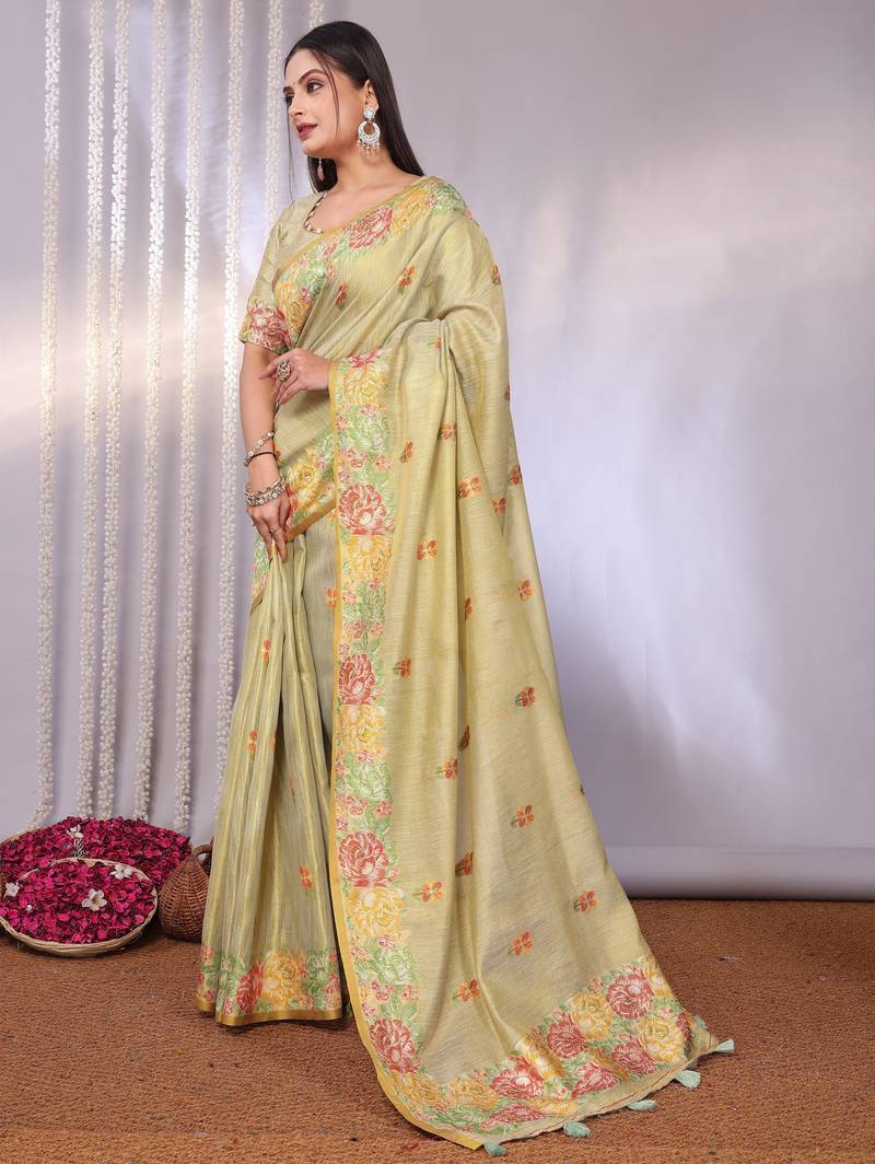 | Product Name | Cream Plain Tissue Tissue Sarees Saree With Blouse | |