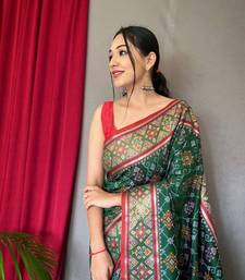 Green plain silk blend patola-saris saree with blouse