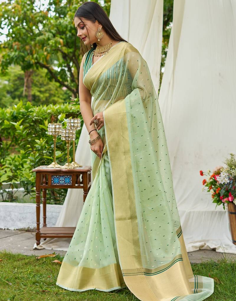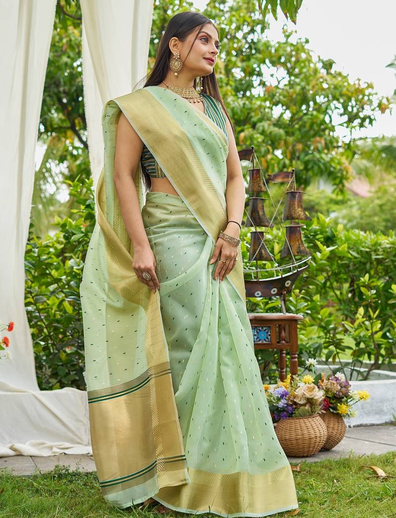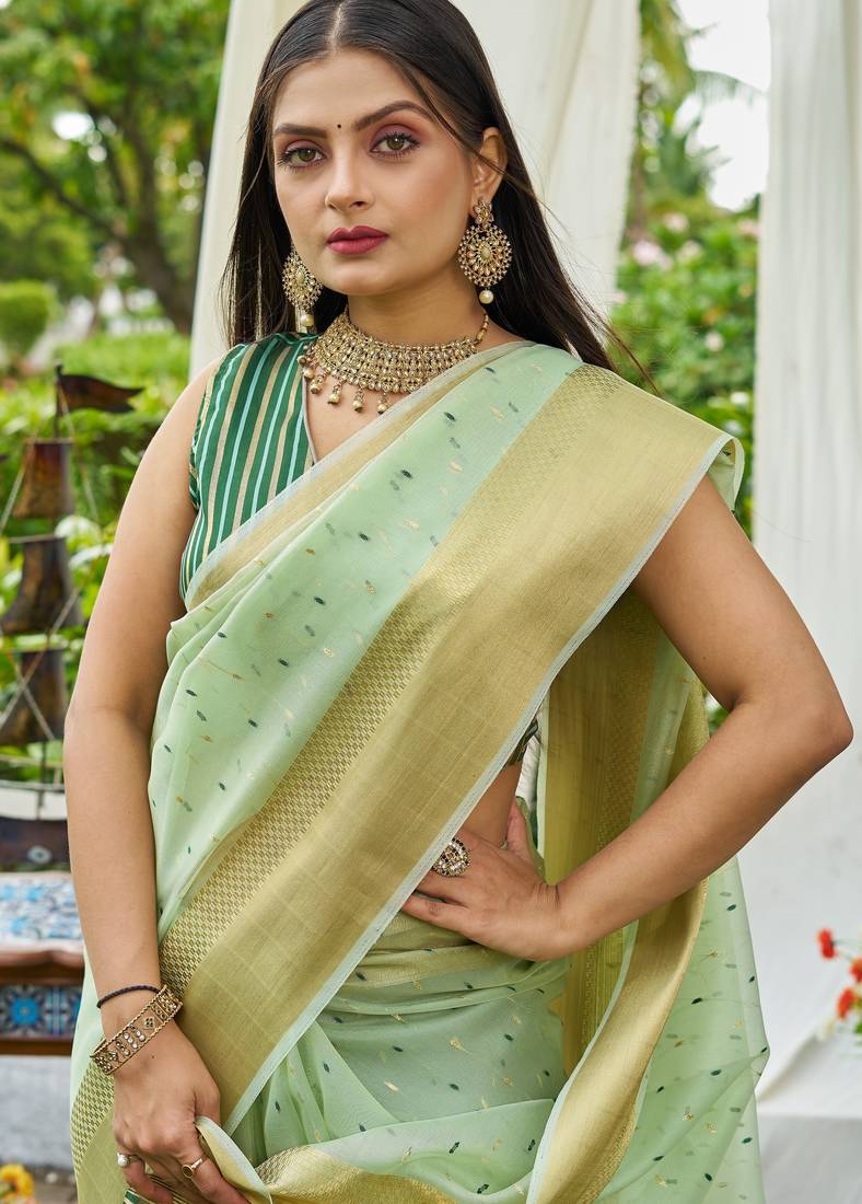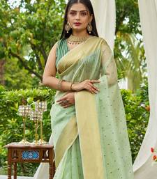 Green plain silk silk-sarees saree with blouse
