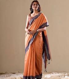 Orange plain cotton cotton-sarees saree with blouse