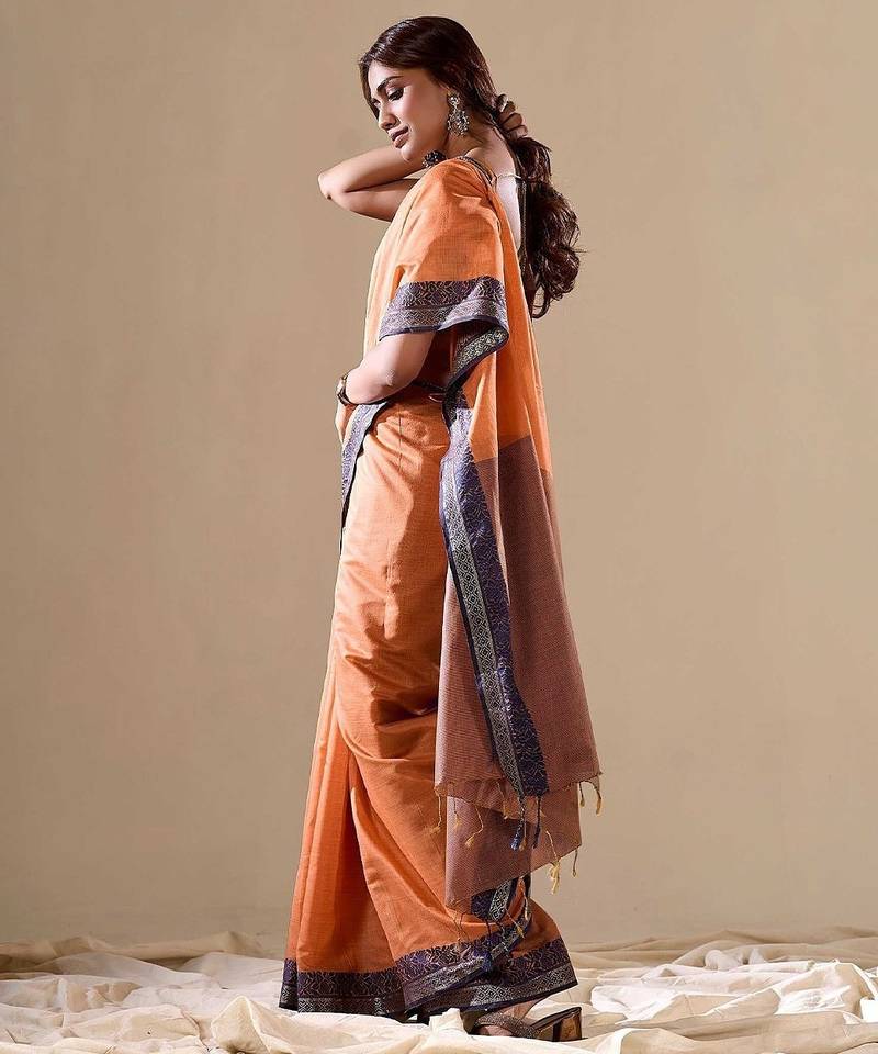 | Product Name | Orange Plain Cotton Cotton Sarees Saree With Blouse | |